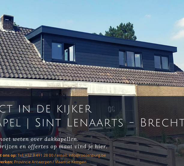 In Sint Lenaarts heeft ons team een dakkapel geplaatst van meer dan 9 meter met een oversteek. Deze dakkapel werd geplaatst met ingebouwde rolluiken. De voor- en zijkant zijn afgewerkt met Cedral antraciet vezelcementstroken met een houtmotief.