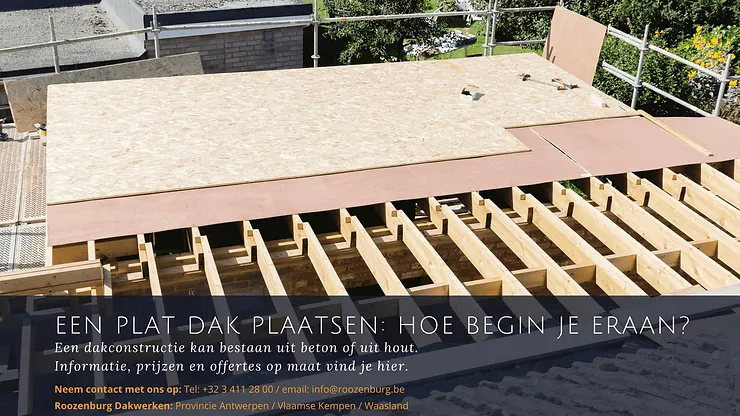 Een dakconstructie kan bestaan uit beton of uit hout. Tegenwoordig worden de meeste platte daken opgebouwd uit beton. Een houten constructie wordt nog wel gebruikt, maar dan voornamelijk voor bijgebouwen of schuren.