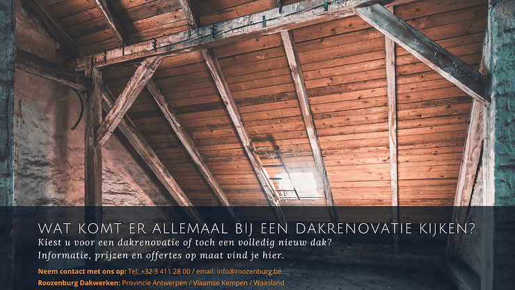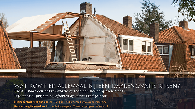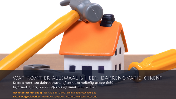 Kiest u voor een dakrenovatie of toch een volledig nieuw dak? Welk soort dakpan kiest u dan? En wat te doen met de dakgoten? Ja, een dakrenovatie is een hele klus, waarbij u op voorhand heel wat denkwerk moet verrichten en voorbereidingen moet treffen. Maar wie last heeft van keuzestress, helpen wij graag verder.