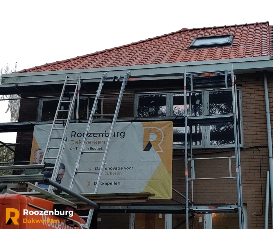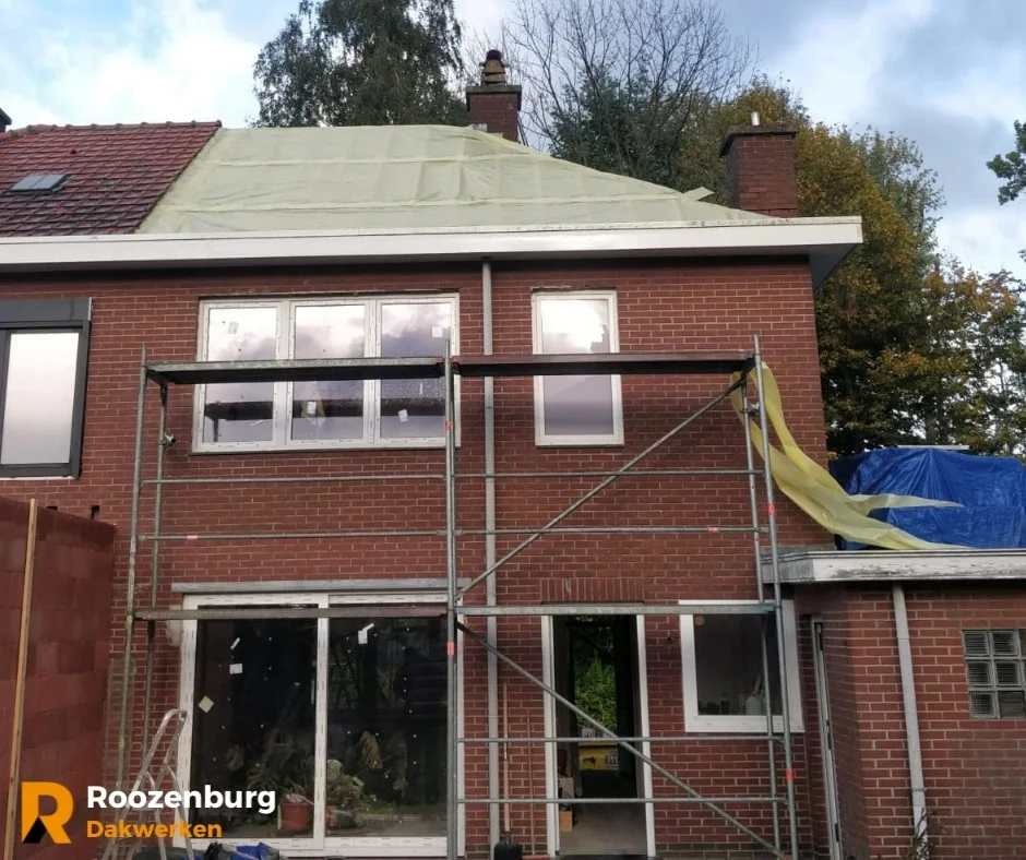 Bij de vernieuwing van het dak werd ook de schoorsteen afgebroken. Na toevoeging van twee Velux dakramen werd ook een waterdichting in de bakgoot geplaatst. Bij dit project gaven wij ook extra aandacht aan de overgang naar het dak van de buren.