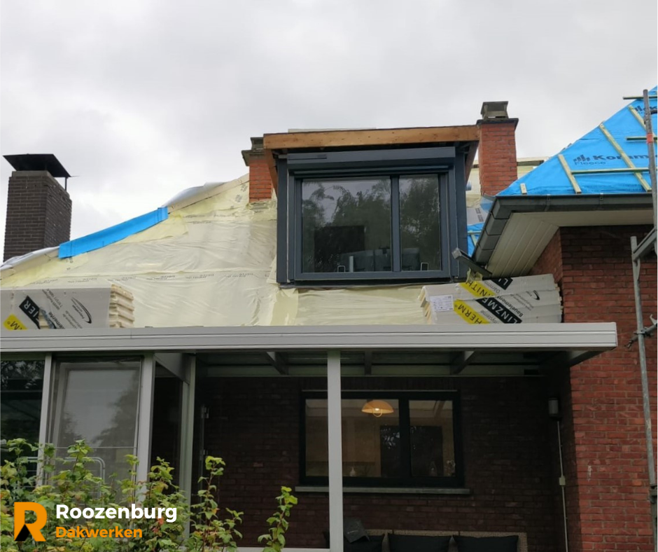 Deze woning in Mechelen kreeg een volledig nieuw dak. Voor we hieraan konden beginnen moest de asbest van het vorige dak worden verwijderd. We hebben het platdak van de dakkapel geïsoleerd en een dakraam geïnstaleerd. Rond het hele dak plaatsten we zilveren hanggoten en regenbuizen.